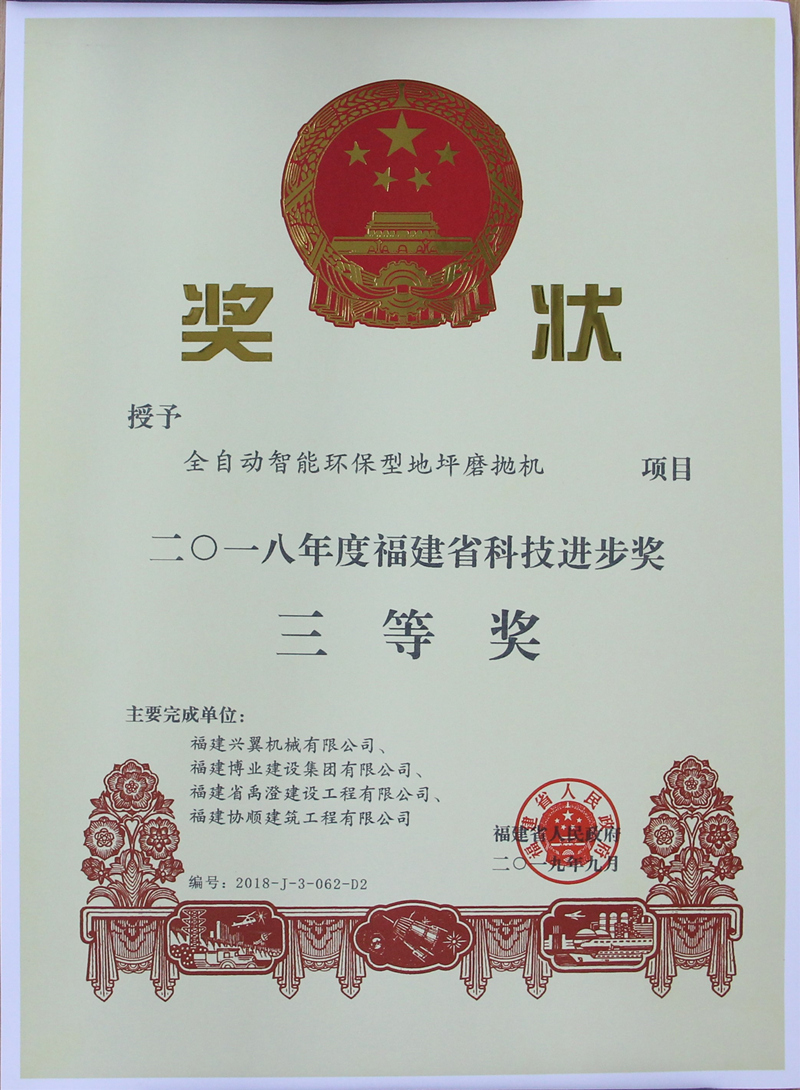 2018年度福建省科技进步奖三等奖